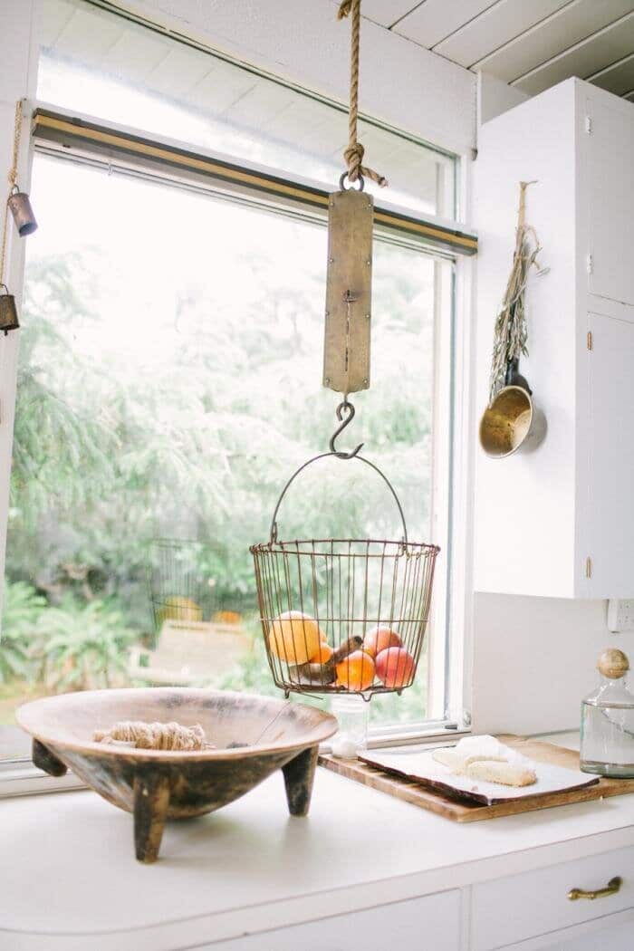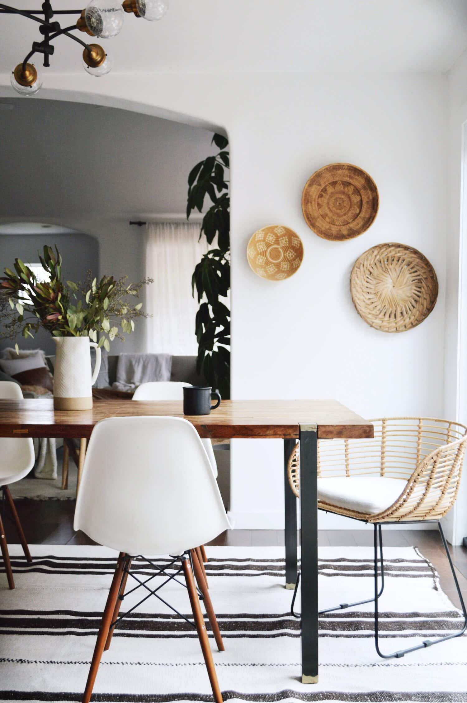Think outside the box. Baskets make great storage but they also make great art. Hang ‘em up and make a statement.