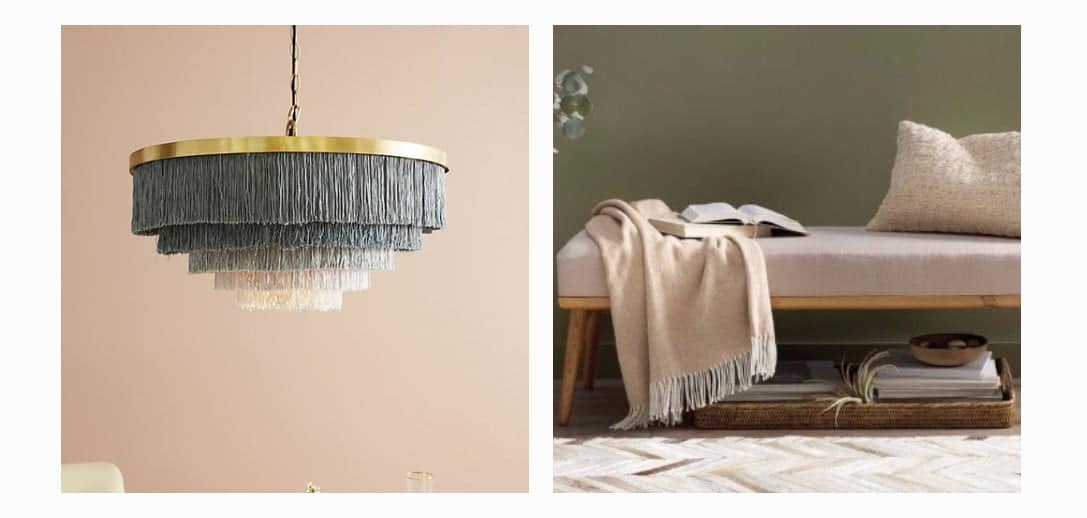 Fringe is one of those design elements that never really goes out of style, but this season it’s everywhere! There are an abundance of textiles you can select from. But if you’re ready to take fringe to the next level, try it in a more unexpected material like a lamp shade or wall art.