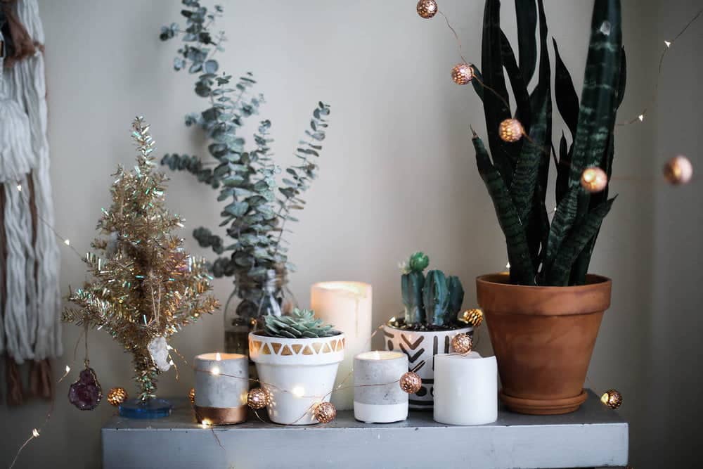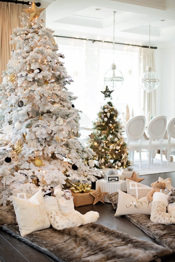 The earthiness of rustic styles add a coziness factor that feels perfect for the dipping temperatures of the season. Bring out your best (faux) fur blankets and rugs to gather by the tree or the fireplace and add some natural elements to your decor. We particularly love bare branches, acorns, and loads of shrubbery.