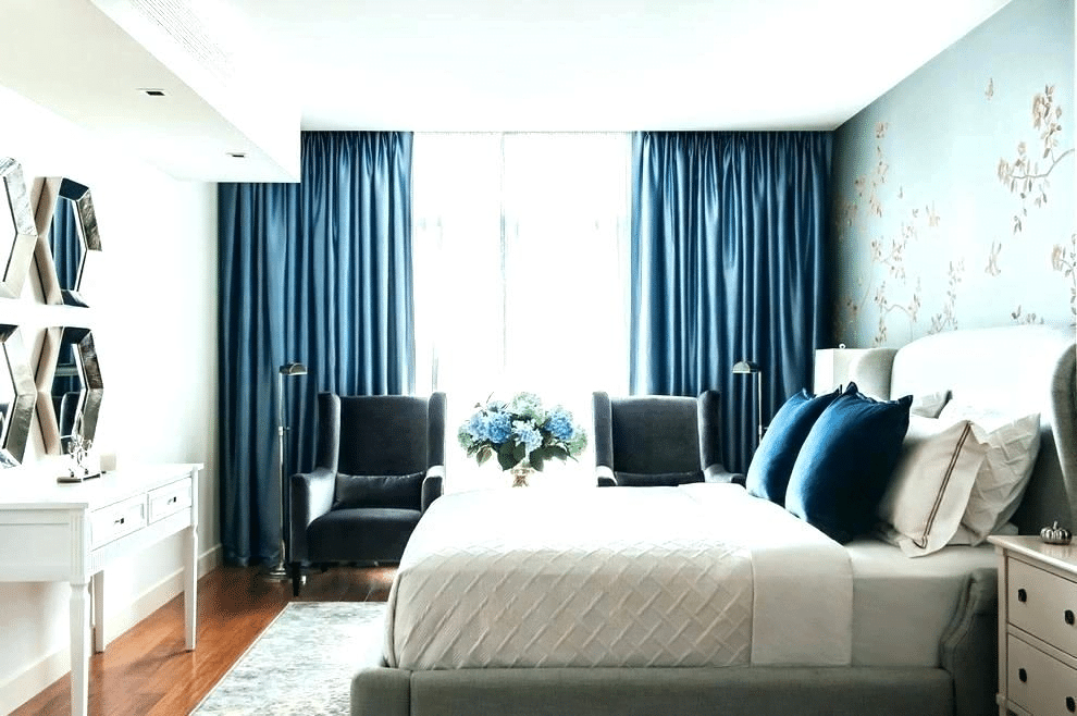 Floor to ceiling drapery will always make a room appear bigger than it is. Especially when you have lower ceilings. Similar to having a large piece of art, drapery will draw the eyes up and make the room seem taller. Our major tip: be sure to mount the drapes to ceiling height.