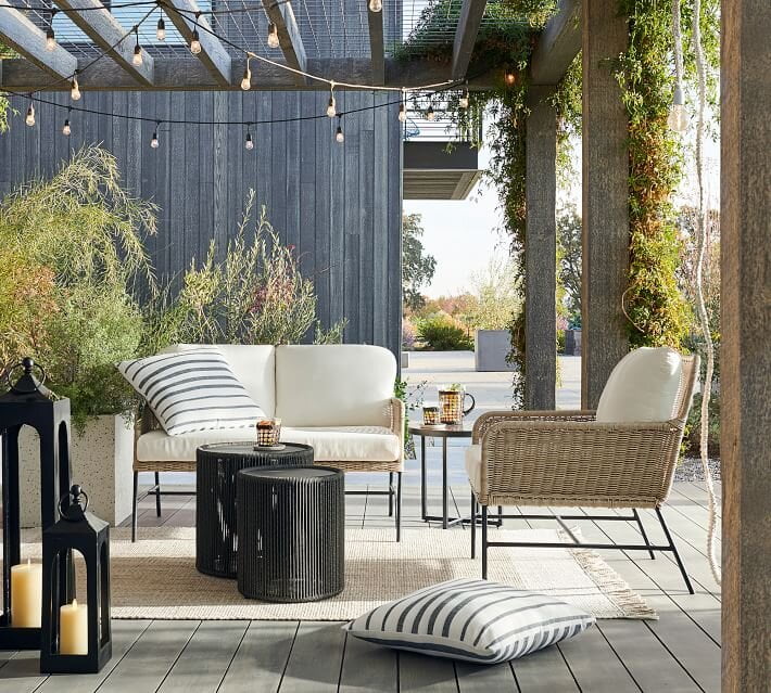 Another element Betsy always recommends is one black item in every room. Touches of black can really elevate an outdoor space. Why not try these Caleb Lanterns from Pottery Barn? Starting at $34.50 they add a lot of drama for a little dough.