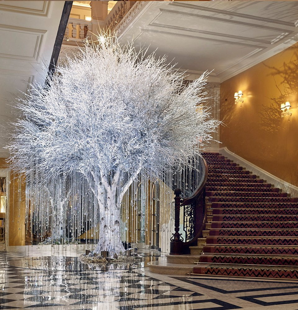 The property describes its tree as, “a frozen dreamscape, inspired by the Roaring 20s in celebration of the hotel’s rich and glamorous Art Deco design heritage.” Our take? Lavishly Dramatic.