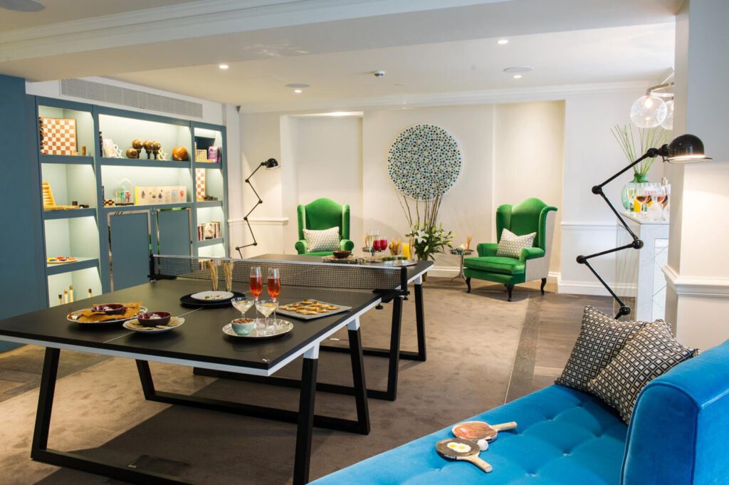 It’s just like it sounds. Whimsical design includes elements of humor to make you smile. Think bird motifs, chairs shaped like hands, or a ping-pong dining table, like you see below!