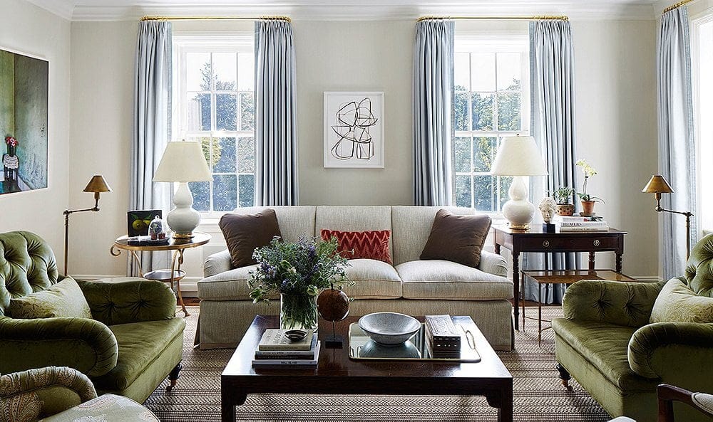 A layered room builds interest by using several varied elements in the design. Just like building a home, the room’s construction can be considered its bones, but the layers add interest. To layer like a pro, keep the color palette concise, add an organic item, use texture, and a variety of fabrics. And as Betsy says in her book, Affordable Interior Design: High-End Tips for Any Budget, be sure to add at least one black item for richness.