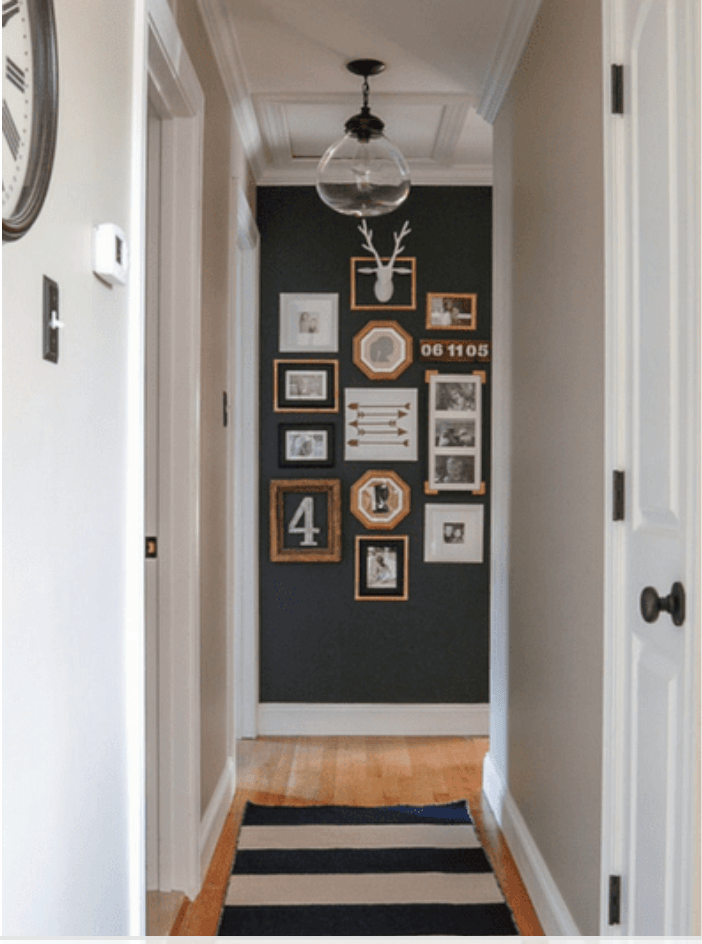 Most people assume that a narrow hallway is the perfect spot for a gallery wall or artwork in general. But sometimes it’s actually not ideal! To figure out whether it will work, follow Betsy’s “Chicken Test”: stand in the hallway, place your thumbs under your armpits to form chicken wings and spread them out! If you have plenty of room to do the chicken dance, hang all the art you want! But if your wings touch — or come very close to touching — the walls on either side, forget the artwork, lest you end up bumping into your perfectly hung prints each time you pass by. But don’t worry, there are plenty of other options to add visual interest to your hallway.