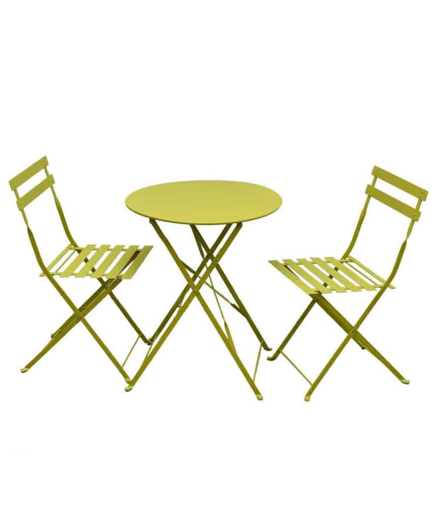 I love the bistro chairs and table from Tuliprop on Etsy because it is a classic, light shape and will look great on small patios. The bright green looks beautiful in a garden mixed with colorful flowers, and the chairs can be painted a different hue every summer if you want a little change.