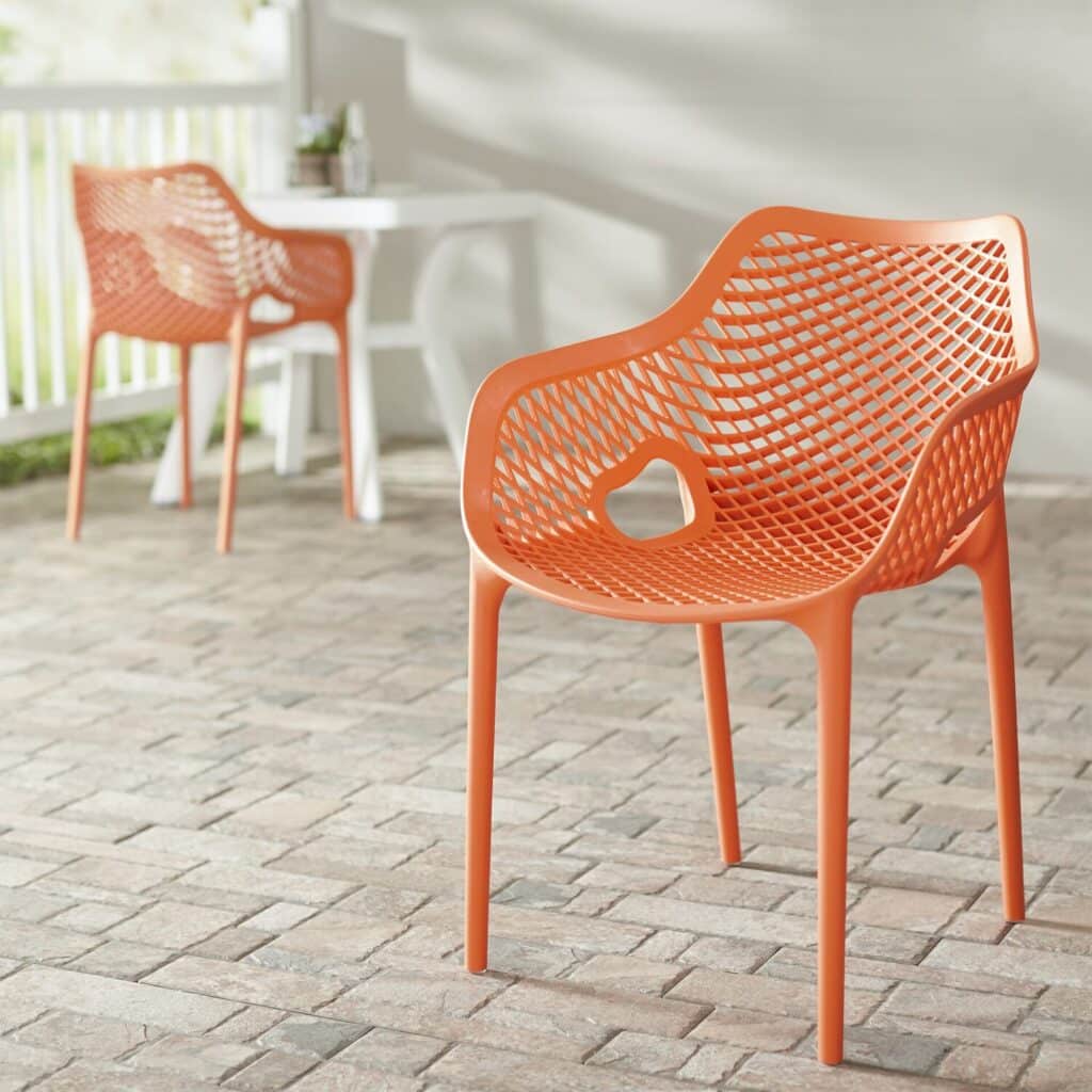 These patio chairs are not only beautiful, they’re made of mesh and allow the rain and moisture to go right through rather than puddle and wear away at the finish. Plus, plastic is easy to clean and doesn’t get hot like metal or stay damp like wood. Double plus—they stack for easy storage.