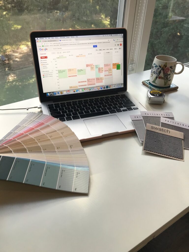“Thank goodness for technology that lets me work from virtually anywhere. I take my trusty Mac with me wherever I go, since I always need to reference my client notes, floor plans, and shopping lists. And as long as I have a reliable Wi-Fi network, I can design from wherever feels most comfortable that day. Most often that’s a desk, but occasionally it’s a local coffee shop, an outdoor space, or even somewhere more inspiring! I love that I can change it up.”